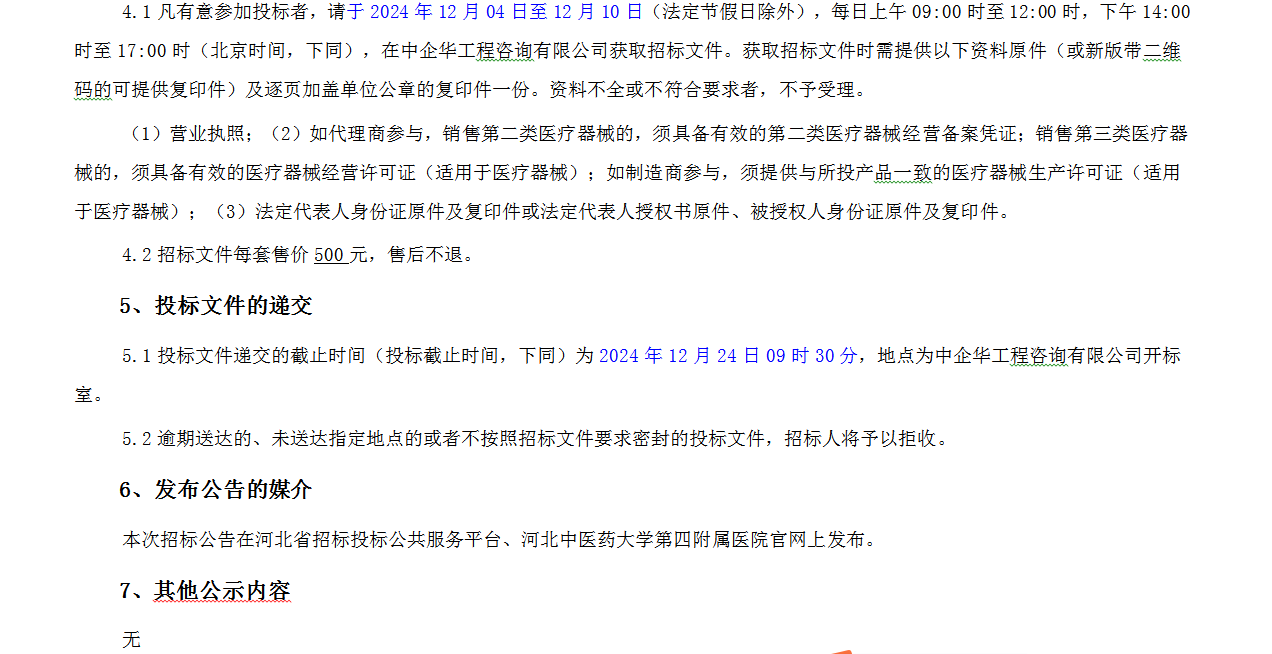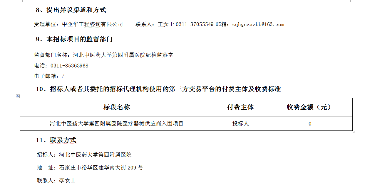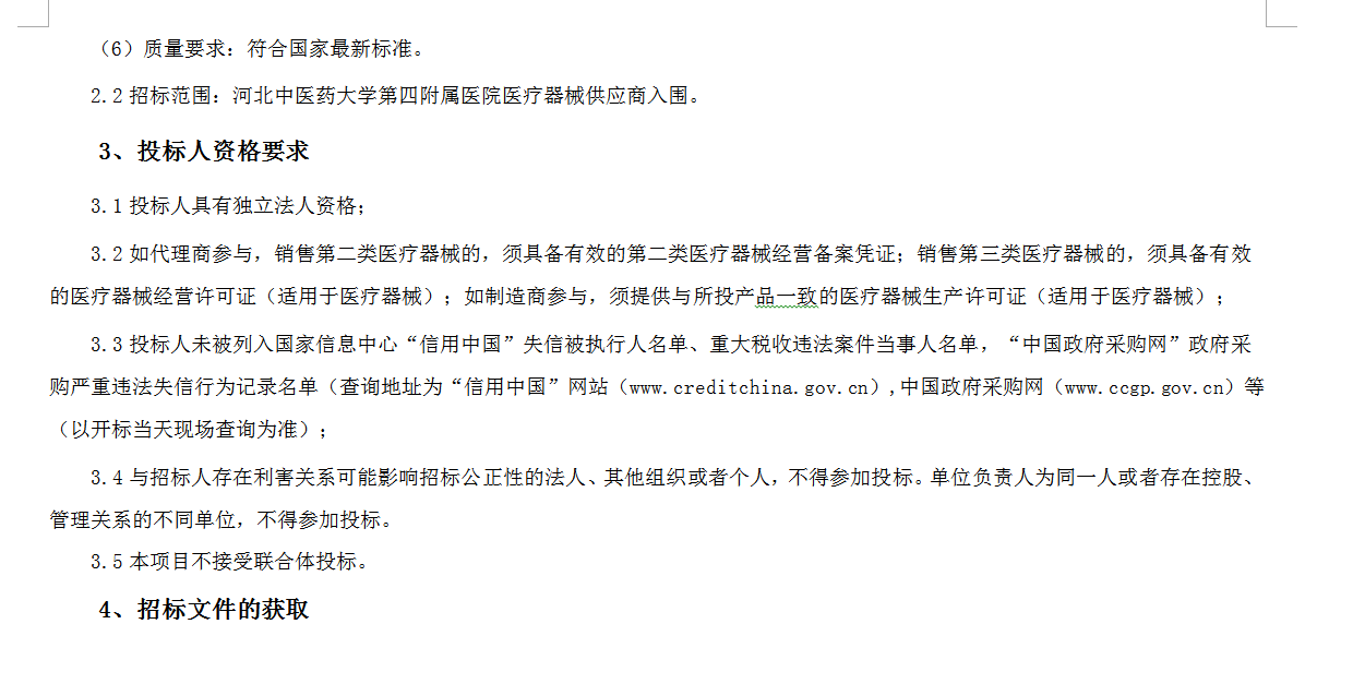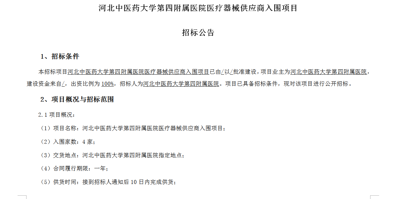 河北中医药大学第四附属医院医疗器械供应商入围项目招标公告