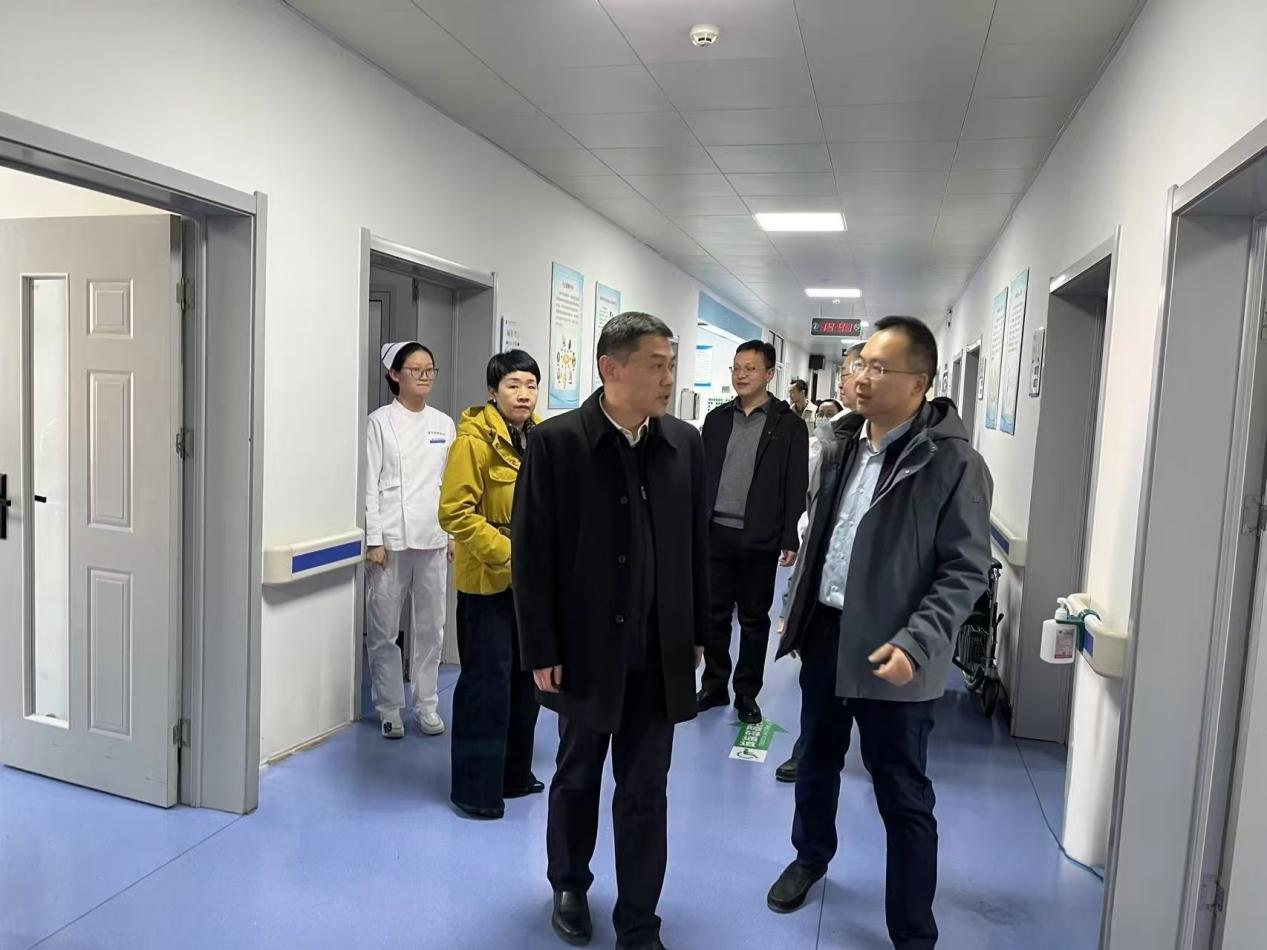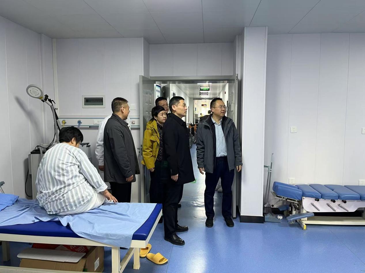 郭毅一行先后实地考察了我院门诊科室、医技科室、病区,详细询问了病床周转率、门诊就诊人数以及病区建设等情况,还深入科教实验中心现场查看并指导科研工作。
