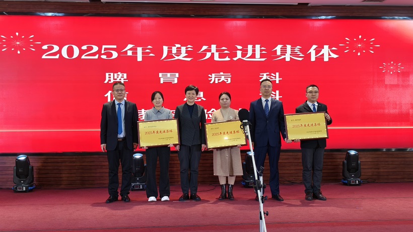 表彰会由院长班光国主持,医院党委委员、副院长赵贵起宣读《关于表彰2025年先进集体和先进个人的决定》,对过去一年里在临床诊疗、科研创新、行政管理等各条战线做出突出贡献的先进集体和个人进行隆重表彰。学校与医院领导为获奖集体及个人颁发荣誉证书。现场掌声热烈、氛围温暖,既是对获奖者的充分肯定,也激励全体职工学习先进、争当先进、赶超先进,凝聚起奋进合力。脾胃病科刘晓冉代表先进科室,财务处高贤、国医堂中药房贾若飞代表先进个人发言。