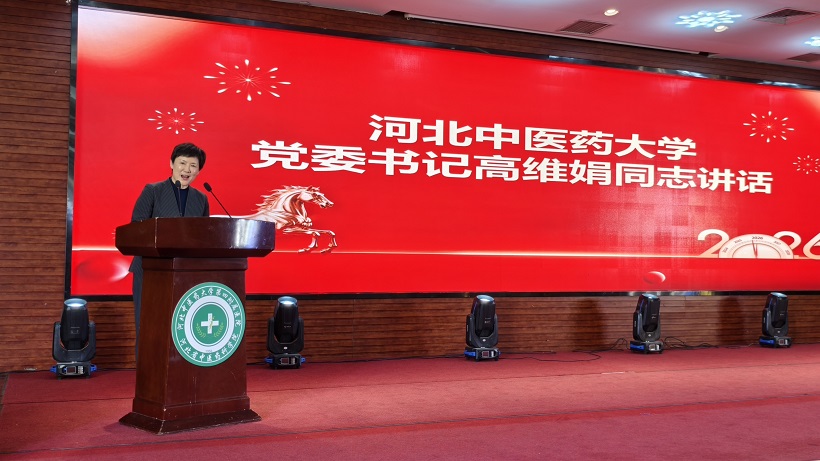 最后,河北中医药大学高维娟书记发表殷切讲话,对我院2025年各项工作取得的成绩给予了高度肯定,她指出,成绩的取得是四附院领导班子凝心聚力,带领全院职工团结拼搏、求实创新的结果,大家都是好样的。2026年是“十五五”开局之年,高书记代表学校党委对我院提出四点希望:一是坚持党建引领,把准发展方向;二是坚持守正创新,打造优势品牌;三是坚持人才强院,强化科研赋能;四是坚守医者仁心,筑牢发展保障,全院职工凝心聚力,谱写四附院高质量发展新篇章。