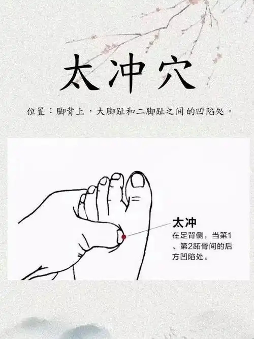 按揉穴位:可以常按揉孩子脚背上的太冲穴(大脚趾和二脚趾间的凹陷处),帮助疏解情绪。