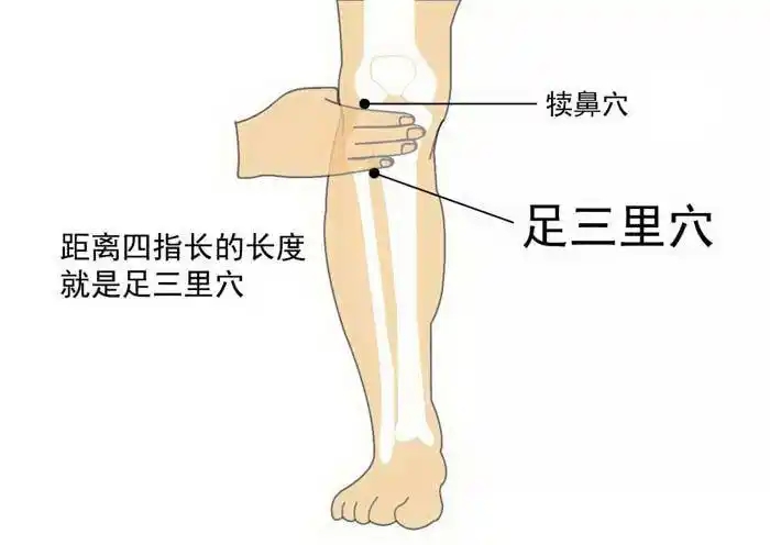 按揉足三里:膝盖外侧凹陷下约四指宽处,用拇指按揉50-100次,能健脾和胃。