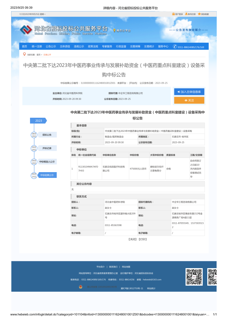 中央第二批下达2023年中医药事业传承与发展补助资金(中医药重点科室建设)设备采购中标公告